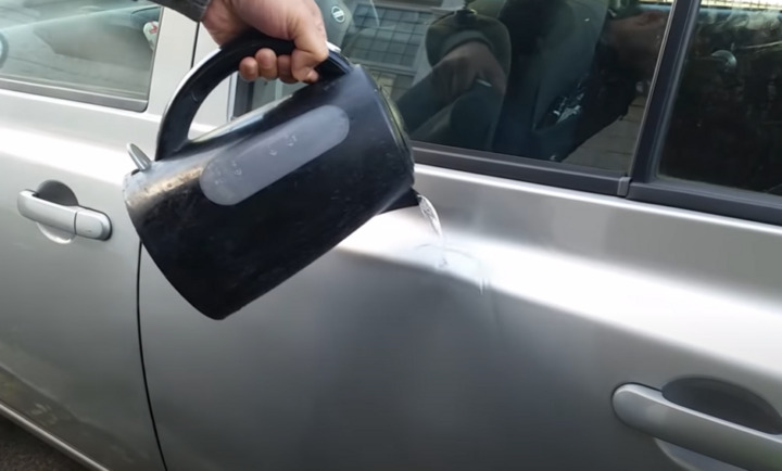 Tip for repairing car dents with boiling water