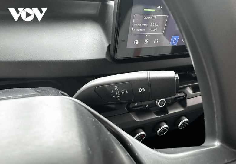 On the plus side, the VinFast VF 3 features a gear lever placed where the windshield wiper lever usually is (similar to the layout in Mercedes-Benz cars). The car also uses an electronic parking brake, which is much tidier than a mechanical handbrake. This gives passengers more space and allows them to move comfortably between the two front seats. If desired, customers can easily add a central armrest.