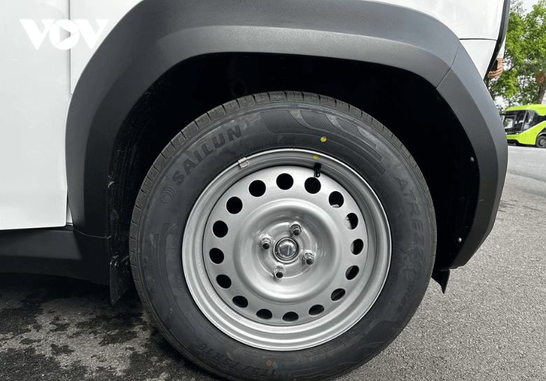 The wheels are also a detail many people are interested in on the VF 3. The car uses 175/75R16 tires commonly seen on "5 ta" trucks, along with steel rims similar to taxi cars. This setup helps the car save energy (thanks to the small tire surface), thereby improving the driving range after each charge and reducing noise. The drawback is that the car will have less grip and stability when driving at high speeds or on slippery roads. But if mainly used in urban areas, this is not a significant issue.