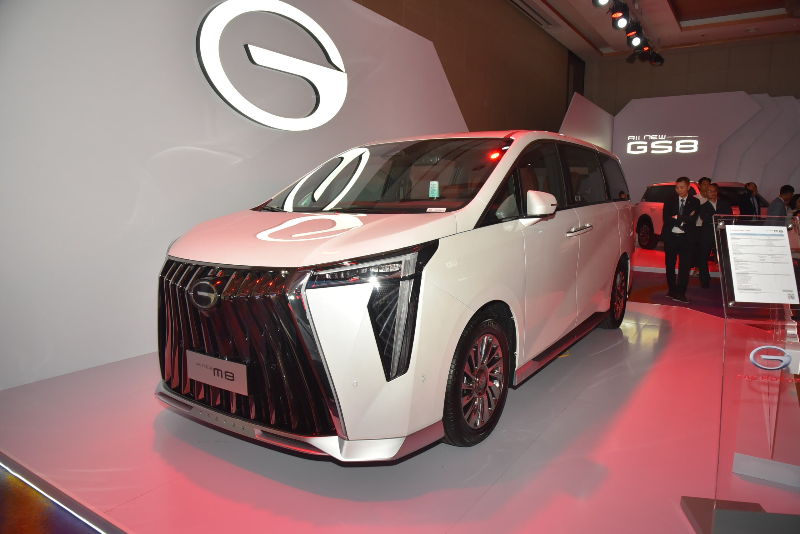 The M8 is quite large, with a length of 5,215 mm, and is distinguished by its large front grille. The design is similar to the Toyota Alphard, with sliding side doors.