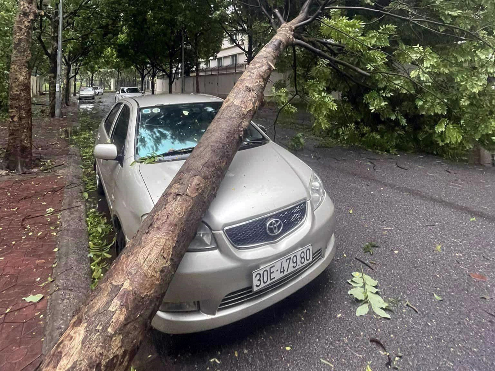 Recently, Typhoon Yagi made landfall in the northern region, causing significant damage to both people and property, including numerous trees being uprooted and falling onto roads. As a result, many cars parked in areas where trees fell suffered severe damage.