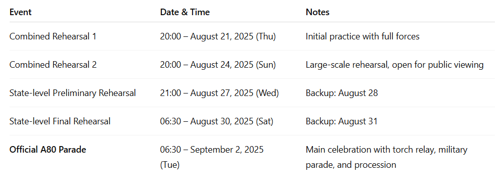 The A80 Parade on September 2, 2025 is not only a proud national event but also a historic milestone marking 80 years of Vietnam’s independence. With the full schedule, route, and rehearsal timeline now available, citizens can plan their attendance with ease.