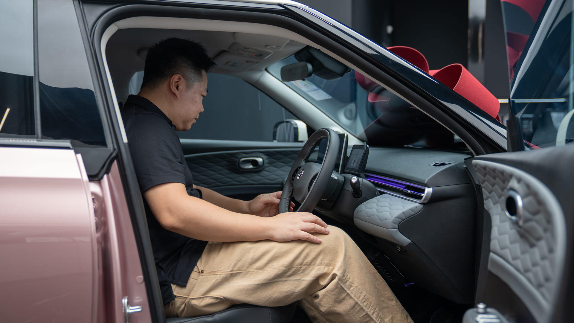 Mr Wong exploring the interior of his new Dongfeng 007 after upgrading from his original prize of a Dongfeng Box.When asked why he chose to upgrade to the 007, Mr Wong said, “Even before the whole lucky draw, I was already eyeing the Dongfeng 007 because it’s very cool and spacious with crazy torque and speed.”