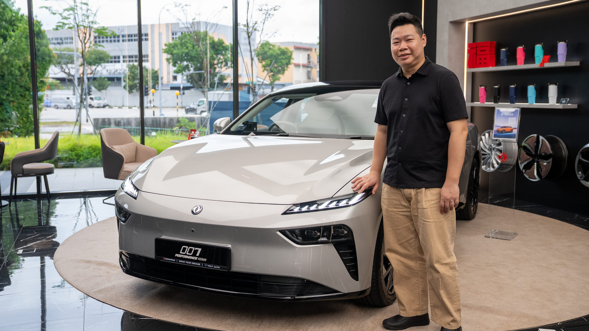 Mr Wong stands proudly next to his brand-new Dongfeng 007.